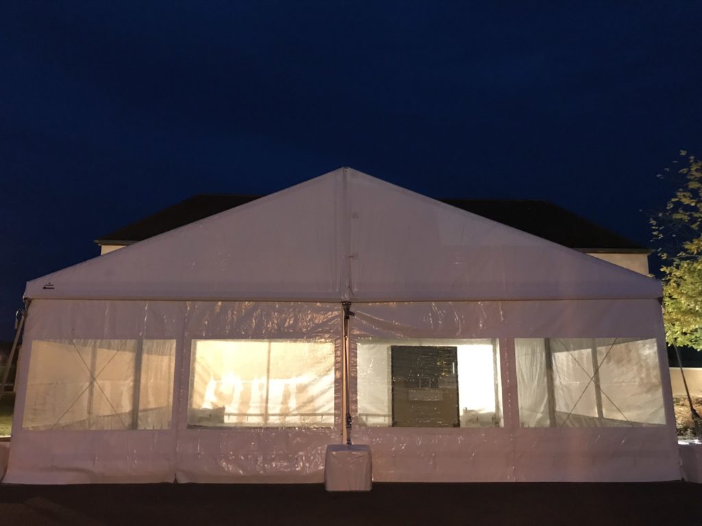 A l’occasion de la vente des vins des Hospices de Beaune mais cette fois-ci à la nouvelle cuverie, les Chapiteaux de Bourgogne ont installé un chapiteau de 10x10m soit 100m2 lesté. Cette structure avait pour objectif d’abriter les files d’attente de visiteurs désireux de déguster au sein même de la cuverie les différents vins des Hospices de Beaune.